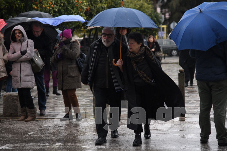 Πίσω από τη σορό του αγαπημένου τους έφτασαν πρώτοι η σύζυγός του Μαρία Παπαγιάννη και τα παιδιά τους Αλεξάνδρα και Στέργιος.