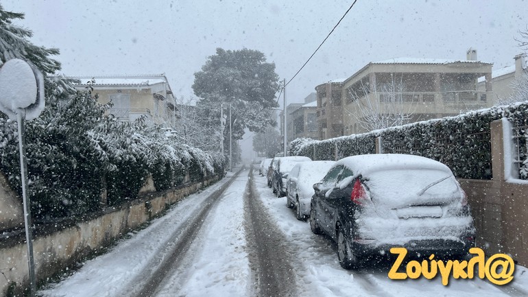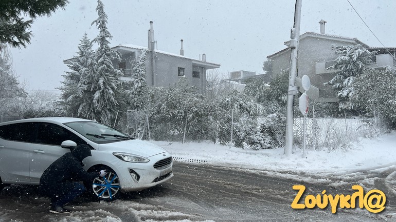Η επέλαση του χιονιά έχει ξεκινήσει ήδη στην Βορειοανατολική Αττική από τις πρώτες πρωινές ώρες της Κυριακής με αρκετή χιονόπτωση.