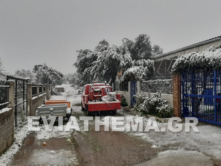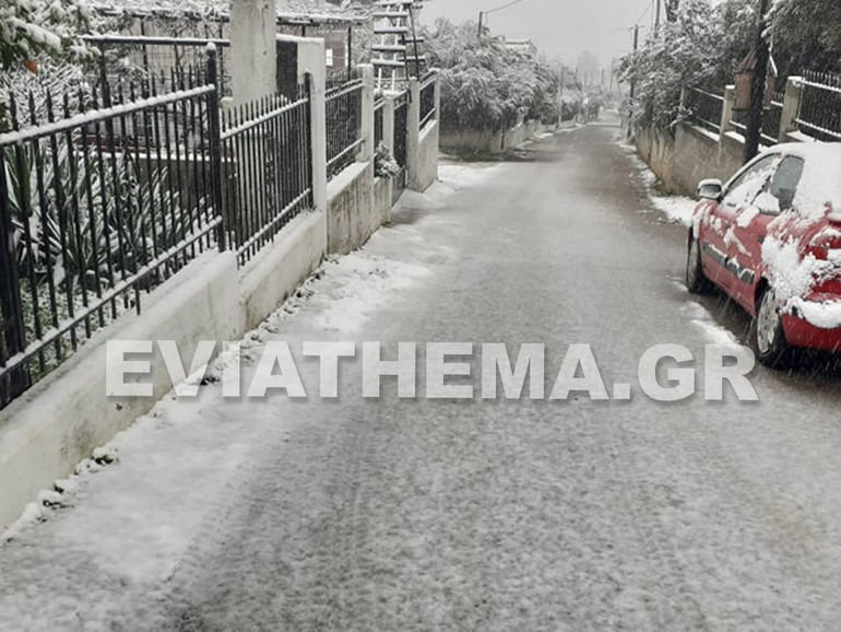 Στην Ερέτρια επίσης έπεσε χιόνι μερικών πόντων, ενώ μπλακ άουτ έχει από τις 08:30…