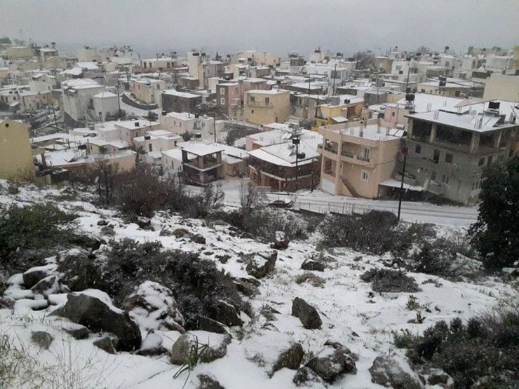 Στα λευκά ντύθηκαν και οι Αρχάνες, χωρίς ωστόσο να έχει δημιουργηθεί πρόβλημα στους δρόμους.