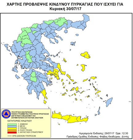 Σύμφωνα με το Χάρτη Πρόβλεψης Κινδύνου Πυρκαγιάς που εκδίδει η Γενική Γραμματεία Πολιτικής Προστασίας του Υπουργείου Εσωτερικών...