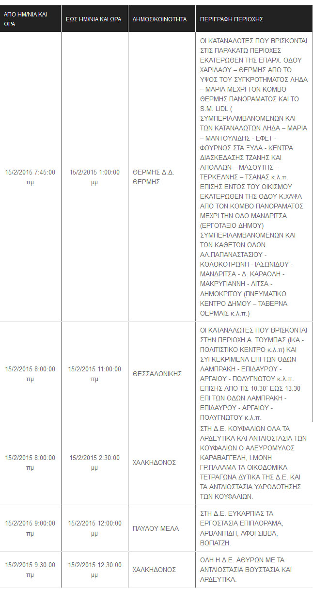 Προγραμματισμένες διακοπές ρεύματος σημειώνονται από το πρωί της Κυριακής σε διάφορες περιοχές της Θεσσαλονίκης.