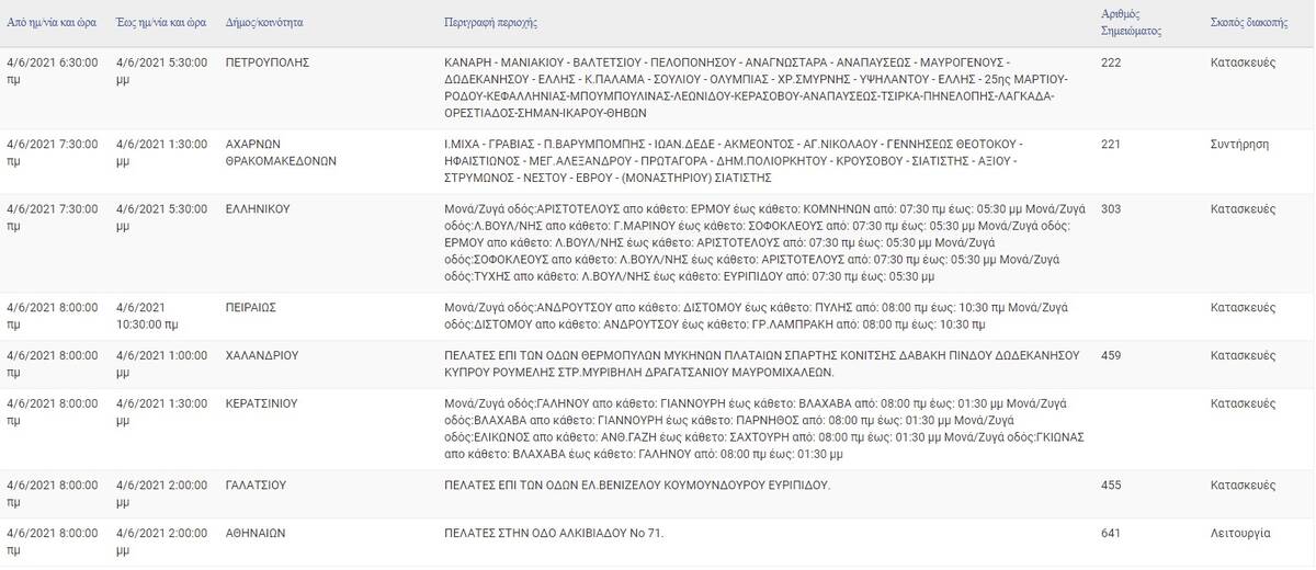Διακοπές ρεύματος σε αρκετές περιοχές της Αθήνας έχουν προγραμματιστεί για σήμερα, Παρασκευή. Ανάμεσα στις περιοχές που δεν θα έχουν ρεύμα είναι η Πετρούπολη, το Γαλάτσι, το Χαλάνδρι και σημεία του κέντρου της Αθήνας.