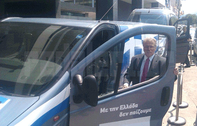 Μάλιστα, δεν δίστασε να πιάσει το τιμόνι και να εγκαινιάσει το παρθενικό δρομολόγιό του. Με αυτό θα ταξιδέψει ο ίδιος σε όλη τη Β. Ελλάδα, για να συντονίσει τον προεκλογικό αγώνα. Το πουλμανάκι είναι βαμμένο στα χρώματα της γαλανόλευκης σημαίας και γράφει «Για την Ελλάδα, για την πατρίδα, με την Ελλάδα δεν παίζουμε».