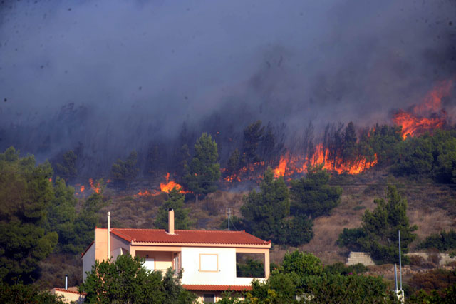 (Οι φλόγες έχουν πλησιάσει τα σπίτια)