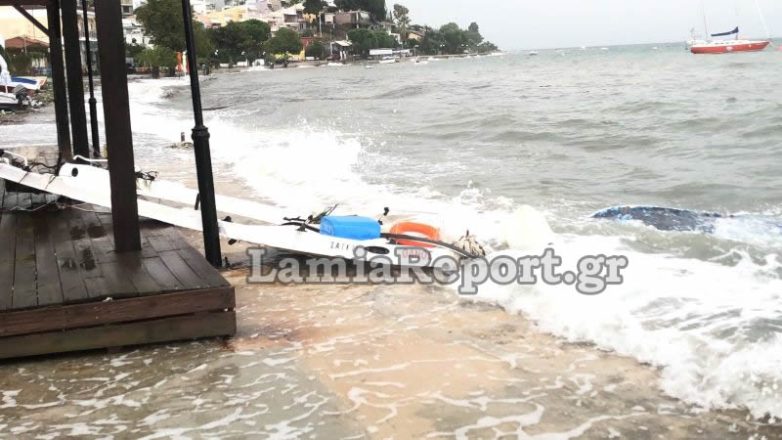 Την ίδια ώρα στις Ράχες Στυλίδας, βάρκες αναποδογύρισαν ή βγήκαν στη στεριά, ενώ οι δυνατοί άνεμοι και η ισχυρή καταιγίδα «διέλυσαν» τις εγκαταστάσεις των καταστημάτων στην παραλία, αφού ο νοτιάς έβγαλε τη θάλασσα μέχρι το δρόμο ο οποίος γέμισε με φερτά υλικά.