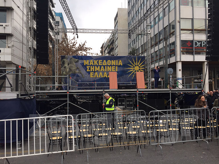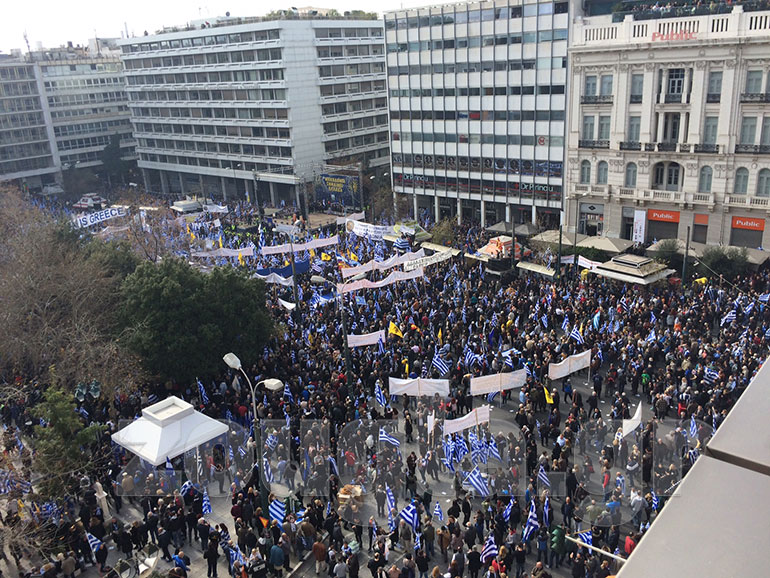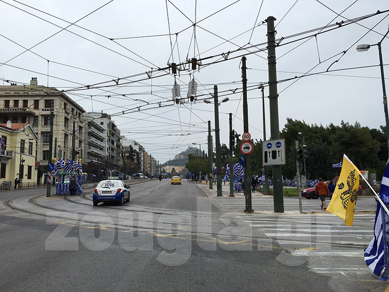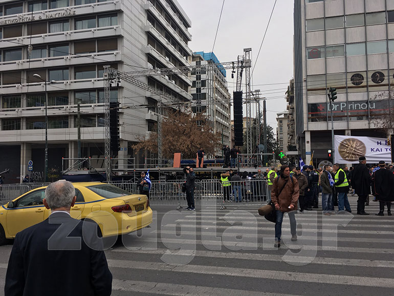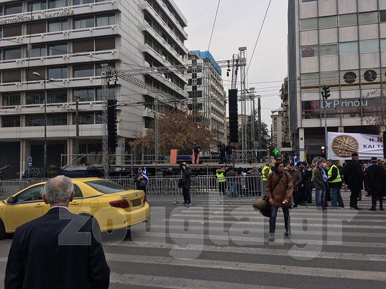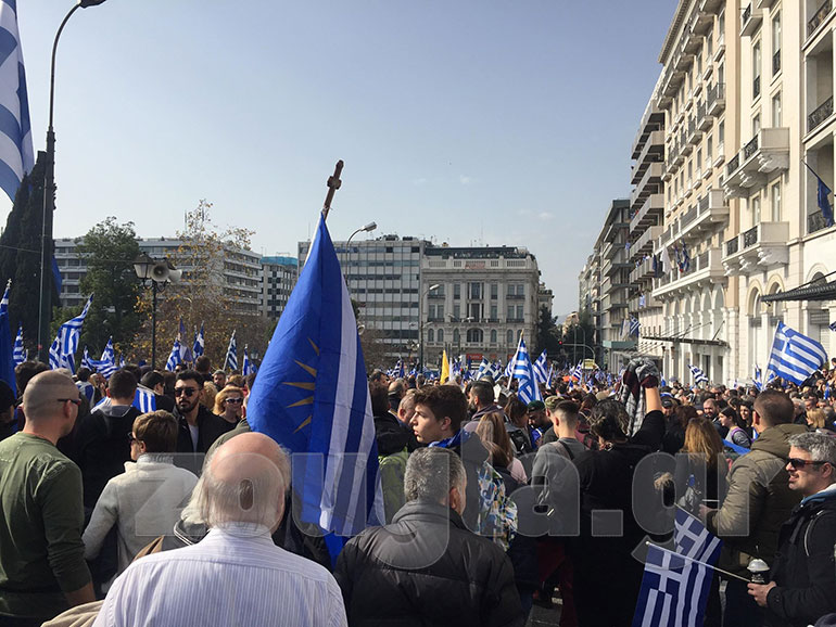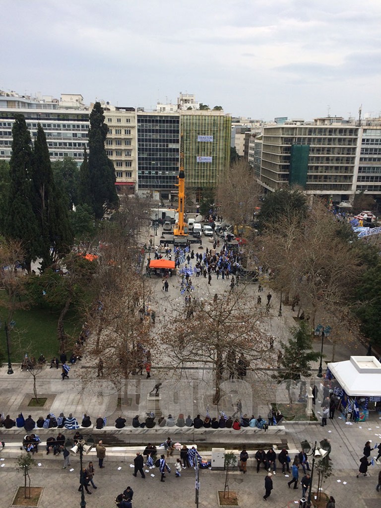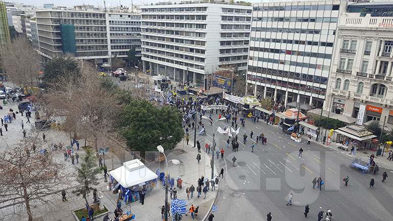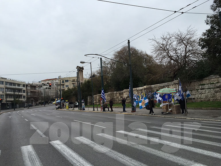 Σε ρυθμούς συλλαλητηρίου κινήθηκε σήμερα η πρωτεύουσα. Οι κεντρικοί δρόμοι της Αθήνας γέμισαν από το πρωί της Κυριακής από διαδηλωτές, ενώ την εμφάνισή τους έκαναν και τα σχετικά «σταντ» με ελληνικές σημαίες, κασκόλ κά.