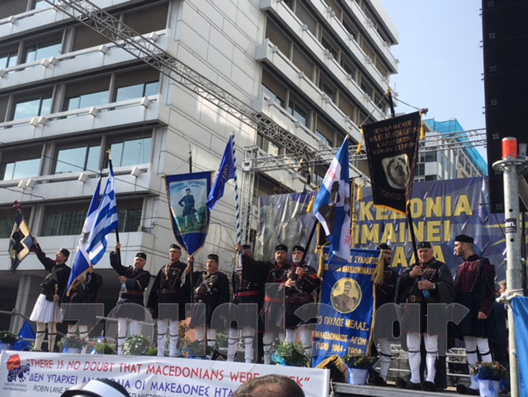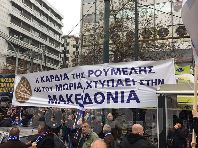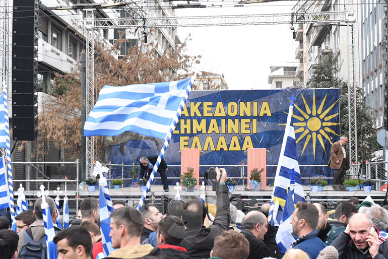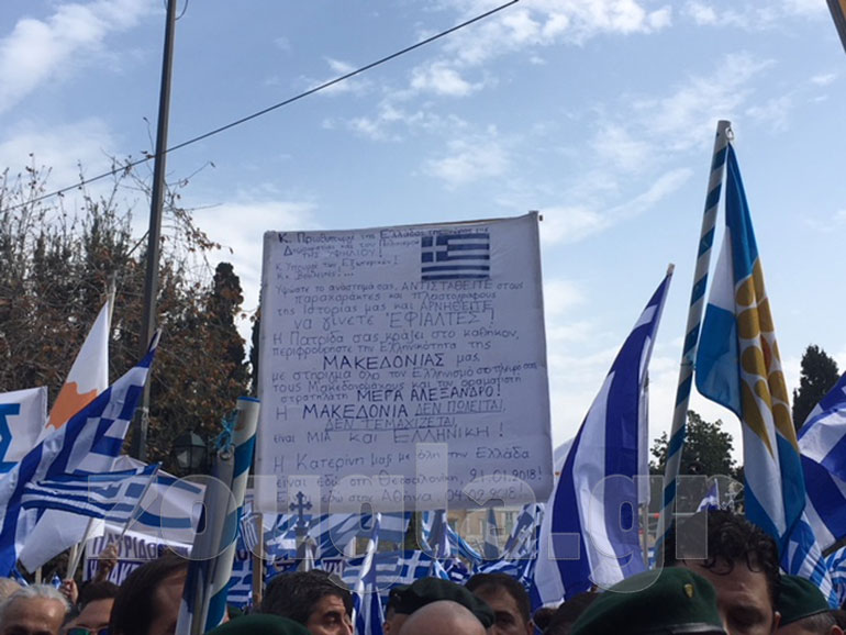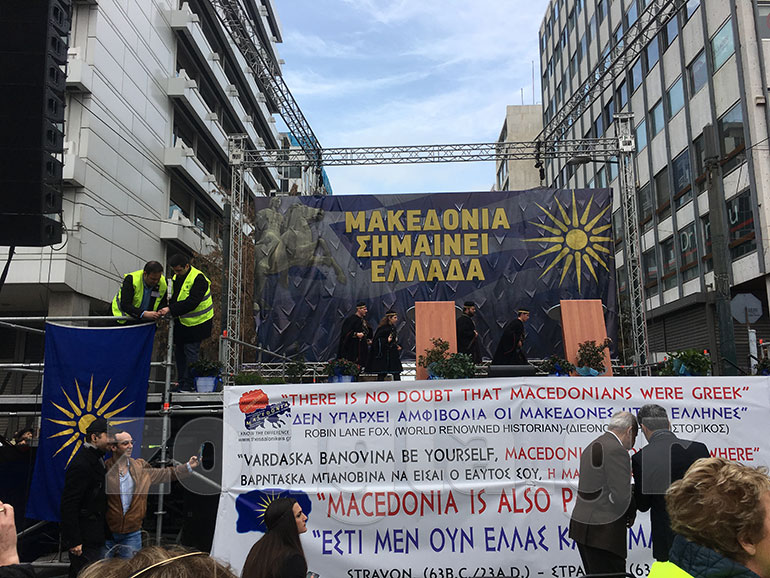 «Απειλούμαστε από αυτή τη χώρα, τα λένε στο Σύνταγμά τους και στα σχολικά βιβλία», πρόσθεσε, και κατηγόρησε για «εθνομηδενισμό» όσους κάνουν πως δεν βλέπουν. Κλείνοντας την ομιλία του, που συχνά διακοπτόταν από συνθήματα, υπογράμμισε πως πρέπει να αποφασίσει, τελικά, ο κυρίαρχος λαός, μέσα από δημοψήφισμα. «Η Μακεδονία είναι μία. Και ήταν, είναι και θα είναι ελληνική».
