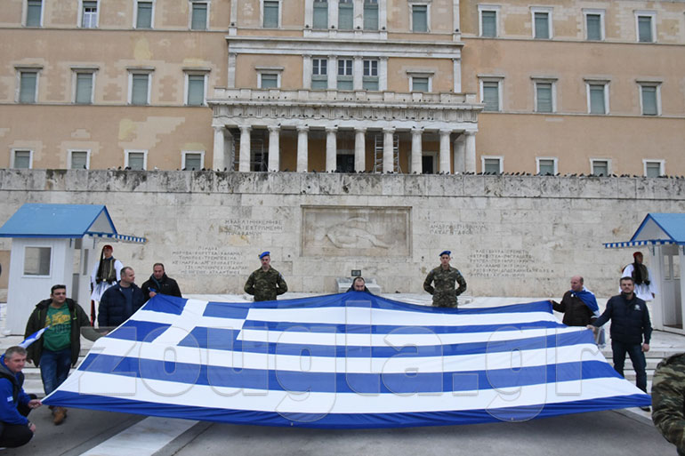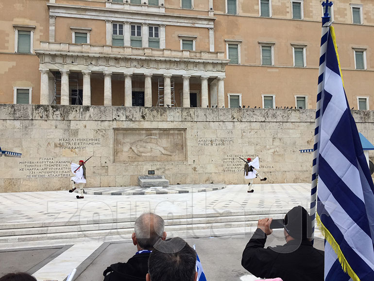 Εκατοντάδες χιλιάδες κόσμου βρέθηκαν στην πλατεία Συντάγματος και τους γύρω δρόμους, προερχόμενοι από την πρωτεύουσα και από την επαρχία.