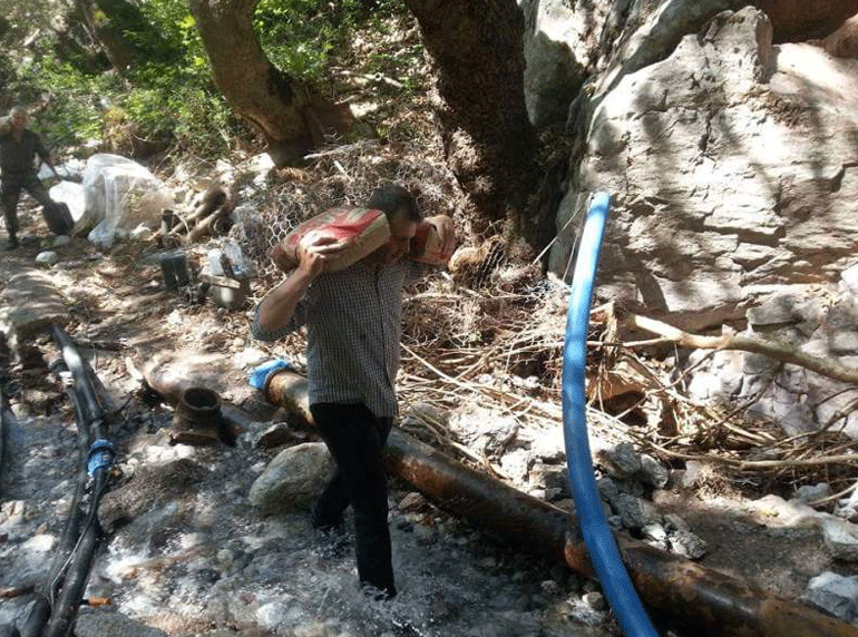 Ο δήμαρχος Στυλίδας βρέθηκε δίπλα στους εργάτες και στις εικόνες που δημοσίευσε ο ίδιος στον προσωπικό του λογαριασμό στο Facebook φαίνεται να κουβαλά σακιά με τσιμέντο και αντλίες για την υδροδότηση του χωριού Παλαιοκερασιά.