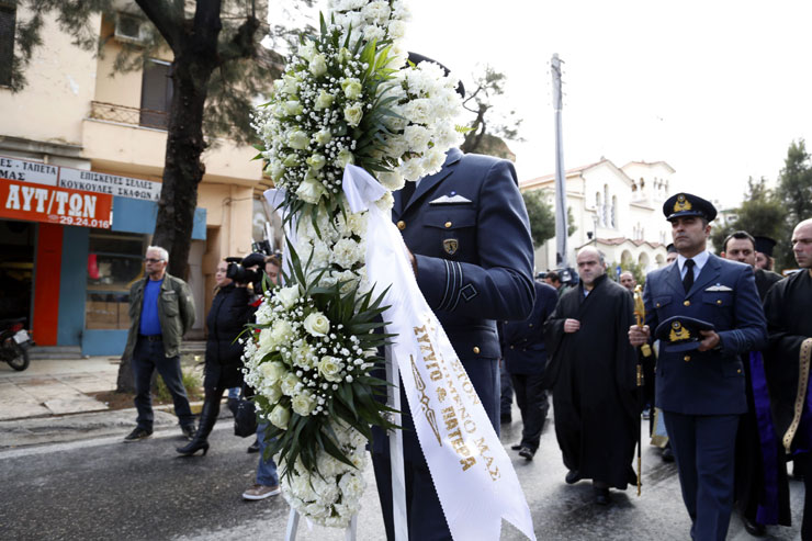 Το τελευταίο αντίο είπαν σήμερα συγγενείς και φίλοι στον σμηναγό Παναγιώτη Λάσκαρη. Η νεκρώσιμος ακολουθία ξεκίνησε στις 12.00 το μεσημέρι στον Ιερό ναό Αγίου Αντωνίου στη Ριζούπολη Αττικής.