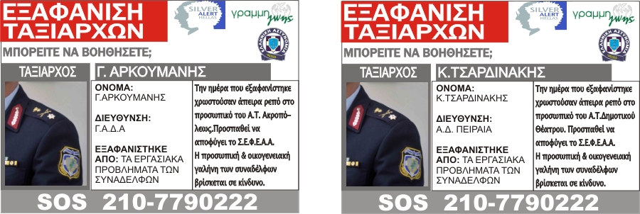 Απόντες από τα εργασιακά προβλήματα των συναδέλφων τους που υπηρετούν στις διευθύνσεις τους είναι οι ταξίαρχοι της Α/Δ Πειραιά κ. Κ. Τσαρδινάκης και της Α/Δ Αθηνών κ. Γ. Αρκουμάνης, καταγγέλει το Σώμα Ειδικών Φρουρών.