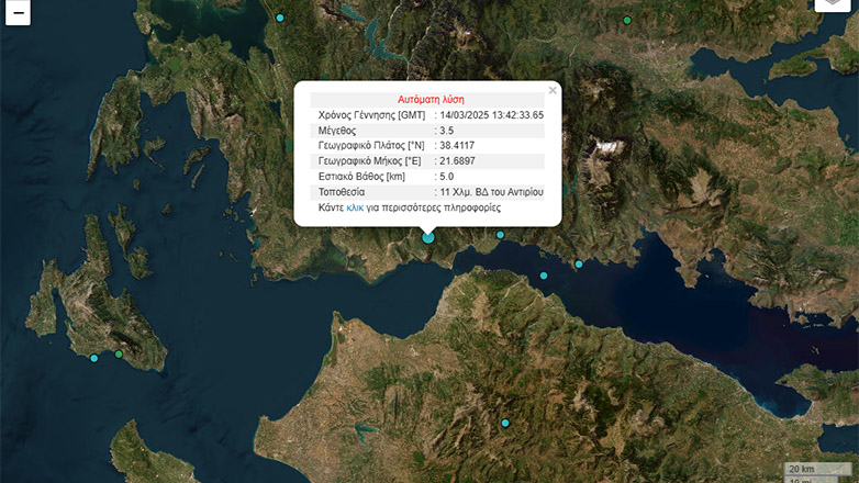 Σχετικά ασθενής σεισμική δόνηση μεγέθους 3,5 βαθμών της κλίμακας Ρίχτερ, σημειώθηκε στις 15:42 το απόγευμα στην περιοχή του Αντιρρίου και συγκεκριμένα σε απόσταση 10 χιλιομέτρων από τη γέφυρα Ρίου-Αντιρρίου.