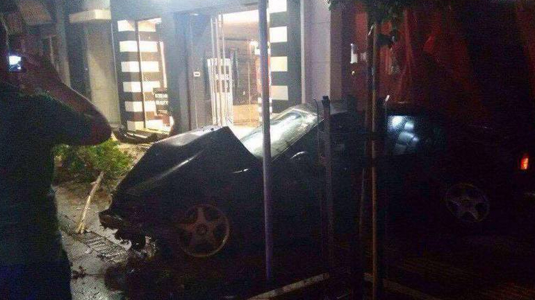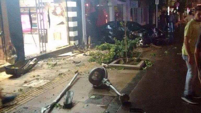 Από το τροχαίο έσπασε η τζαμαρία του καταστήματος, καθώς και κάποια κολονάκια που υπήρχαν στο σημείο.