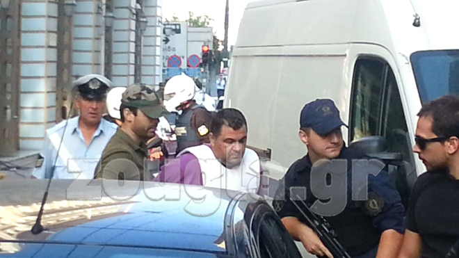 (Με σκυμμένο το κεφάλι οδηγείται στα δικαστήρια)