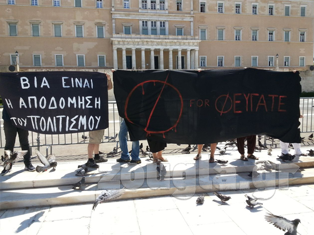 Έξω από το υπουργείο Διοικητικής Μεταρρύθμισης βρίσκονταν παρατεταγμένοι άνδρες των ΜΑΤ με τέσσερις κλούβες.