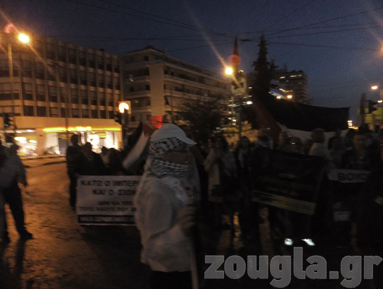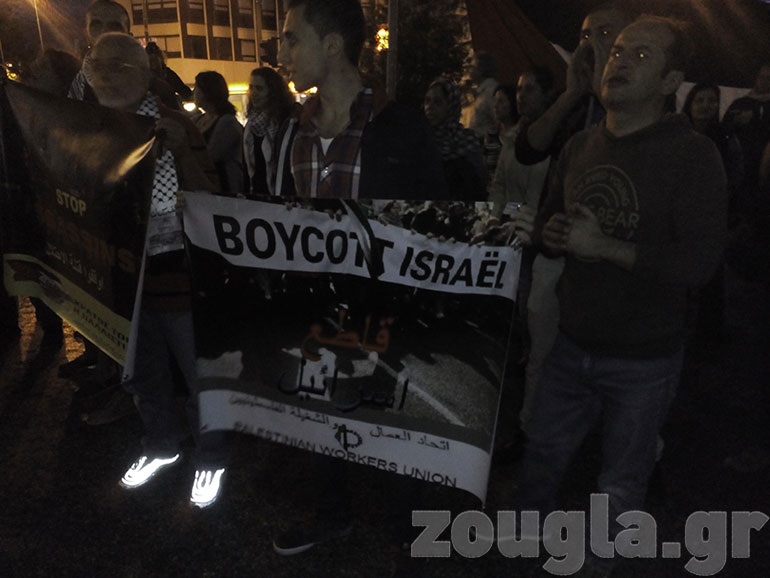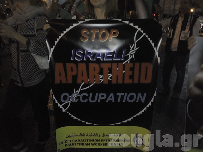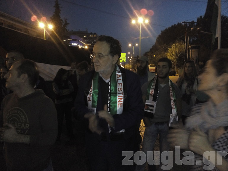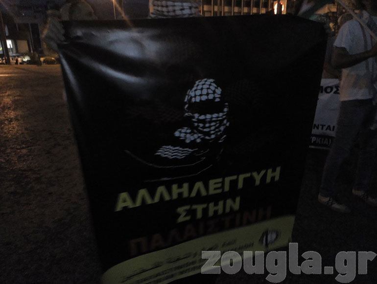 Συγκέντρωση αλληλεγγύης και συμπαράστασης προς τον παλαιστινιακό λαό πραγματοποιείται αυτή την ώρα έξω από την ισραηλινή πρεσβεία στην Αθήνα.