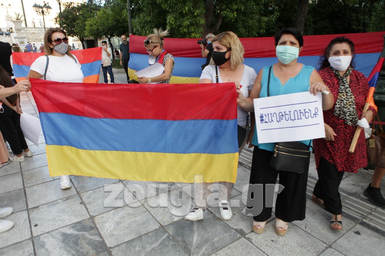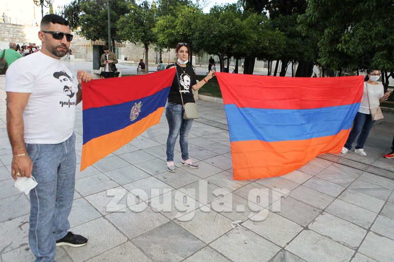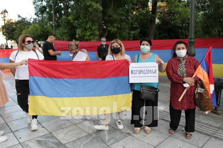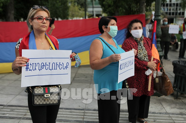 Οι Αρμένιοι συγκεντρώθηκαν στην πλατεία Συντάγματος, για να διαδηλώσουν υπέρ της ειρήνης στην περιοχή του Καυκάσου που απειλείται με γενική ανάφλεξη.