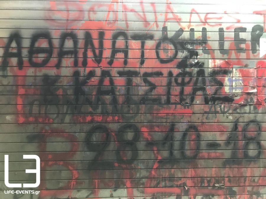 Συγκέντρωση πραγματοποιήθηκε και στο αλβανικό προξενείο στη Θεσσαλονίκη, όπου διαδηλωτές έγραψαν συνθήματα στους τοίχους