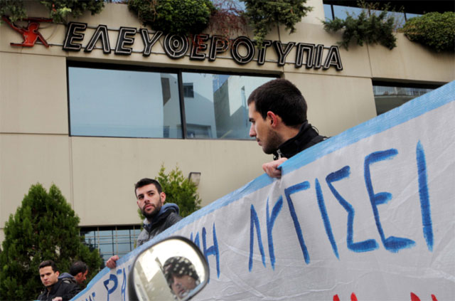 Λίγες ημέρες πριν από την επανακυκλοφορία της εφ. Ελευθεροτυπία, δεκάδες μέλη της Πανελλαδικής Ένωσης Λιθογράφων και απλήρωτοι εργαζόμενοι του συγκροτήματος συγκεντρώθηκαν το μεσημέρι έξω από τα γραφεία στο Νέο Κόσμο, ζητώντας τα δεδουλευμένα.
