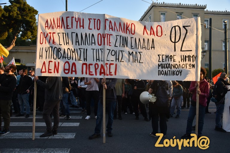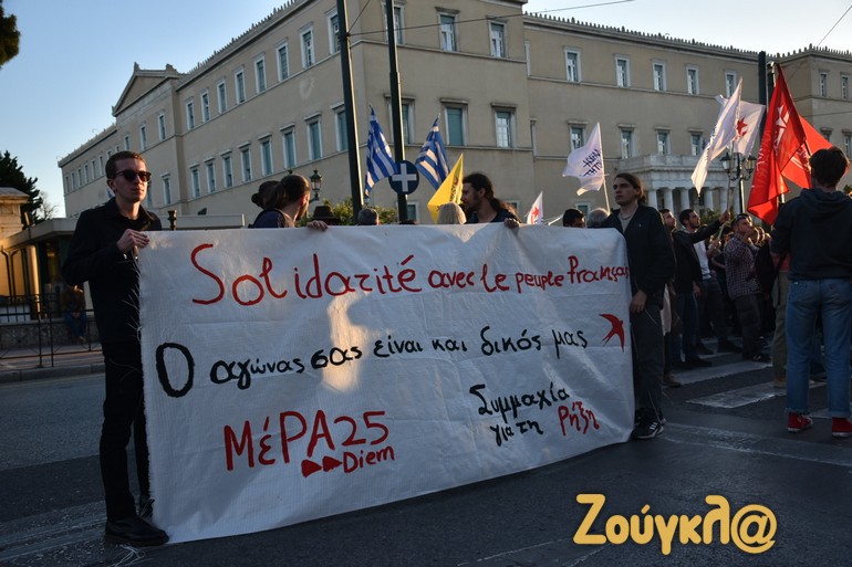 Ολοκληρώθηκε η συγκέντρωση διαμαρτυρίας έξω από την Γαλλική Πρεσβεία που διοργάνωσαν οργανώσεις της αριστεράς.