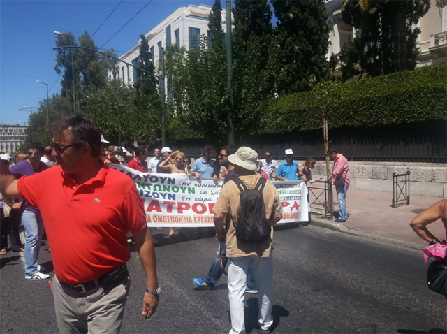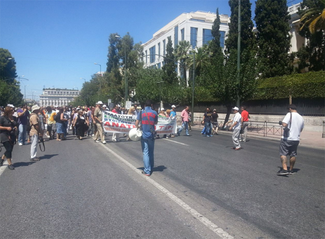 Οι εργαζόμενοι δεν έγιναν δεκτοί από τα στελέχη του υπουργείου και συνέχισαν τη διαμαρτυρία τους με πορεία προς το υπ. Διοικητικής Μεταρρύθμισης.