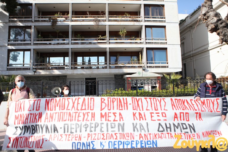 Συγκέντρωση διαμαρτυρίας από δημοτικές παρατάξεις πραγματοποιήθηκε έξω από το υπουργείο Εσωτερικών, με βασικό αίτημα την απόσυρση του σχεδίου νόμου που προωθεί ο υπουργός Εσωτερικών, Μάκης Βορίδης, για το εκλογικό σύστημα ανάδειξης των δημοτικών συμβουλίων.