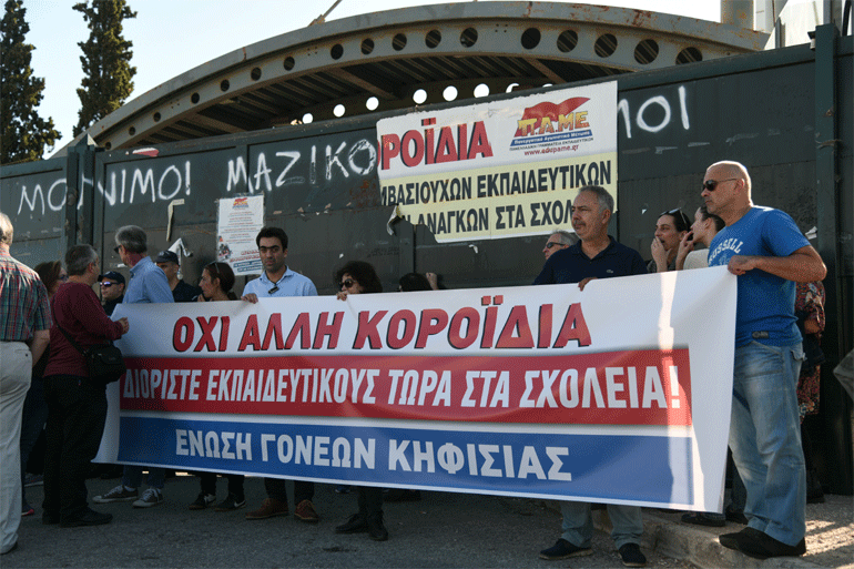 Εκπαιδευτικοί και γονείς μαθητών από σχολεία της Αττικής πραγματοποίησαν, το μεσημέρι της Τρίτης, διαμαρτυρία έξω από το κτήριο του Υπουργείου Παιδείας, Έρευνας και Θρησκευμάτων. Αίτημά τους, η άμεση στελέχωση των σχολείων με εκπαιδευτικούς, καθώς τα κενά παραμένουν στα σχολεία.