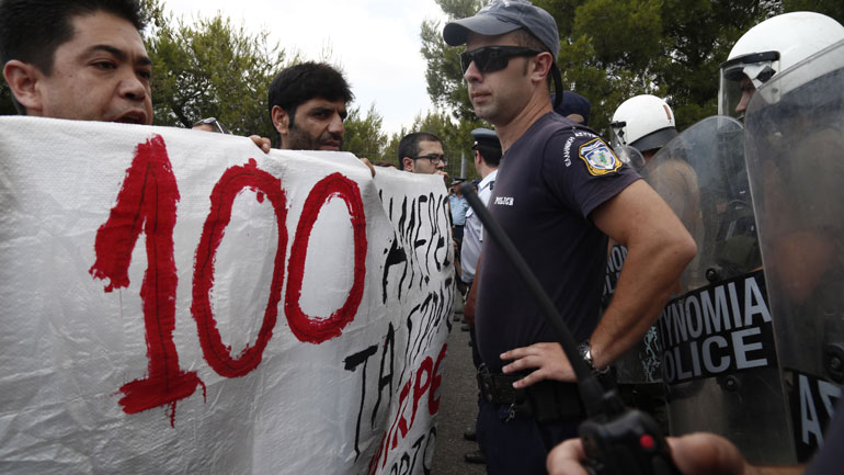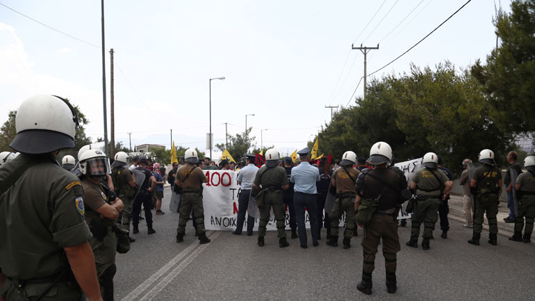 Αντιπροσωπεία των συγκεντρωμένων εισήλθε στο κέντρο προκειμένου να συναντηθεί με κρατούμενους μετανάστες.