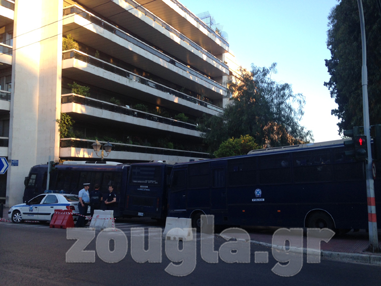 Oι δυνάμεις της αστυνομίας απέκλεισαν αρχικά την πρόσβαση των διαδηλωτών από τη λεωφόρο Βασιλίσης Σοφίας στη συμβολή με την Ηρώδου Αττικού, ωστόσο λίγο μετά τις 19.45 οι συγκεντρωμένοι έσπασαν τον αστυνομικό κλοιό και προχώρησαν στην παράσταση διαμαρτυρίας. Η παράσταση έληξε λίγο μετά τις 20.30.