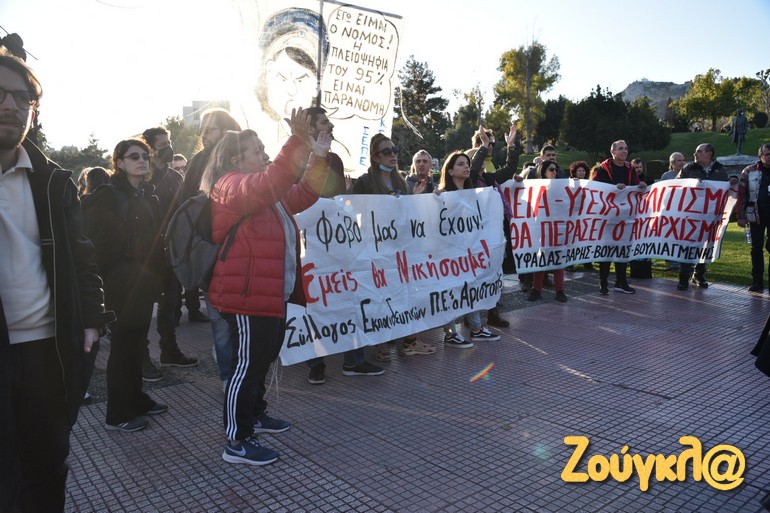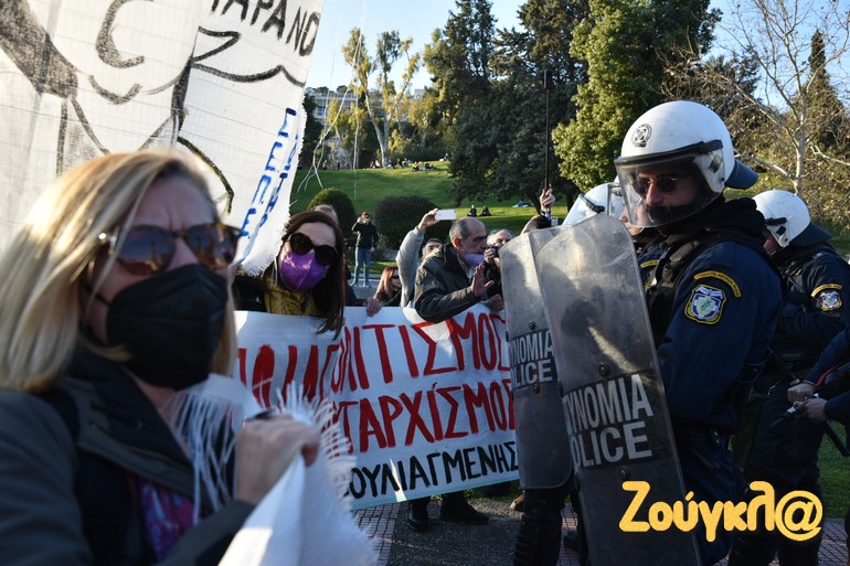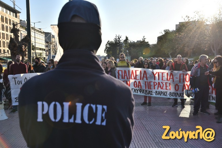 Συγκέντρωση διαμαρτυρίας έξω από την εκδήλωση Κεραμέως – Μητσοτάκη για την παρουσίαση του κυβερνητικού έργου στην Παιδεία, πραγματοποιούν εκπαιδευτικοί στο Μεγαρο Μουσικής.