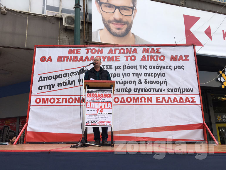 Σημειώνεται πως έχει προκηρυχθεί πανελλαδική – πανοικοδομική απεργία για σήμερα από την Ομοσπονδία Οικοδόμων Ελλάδας.