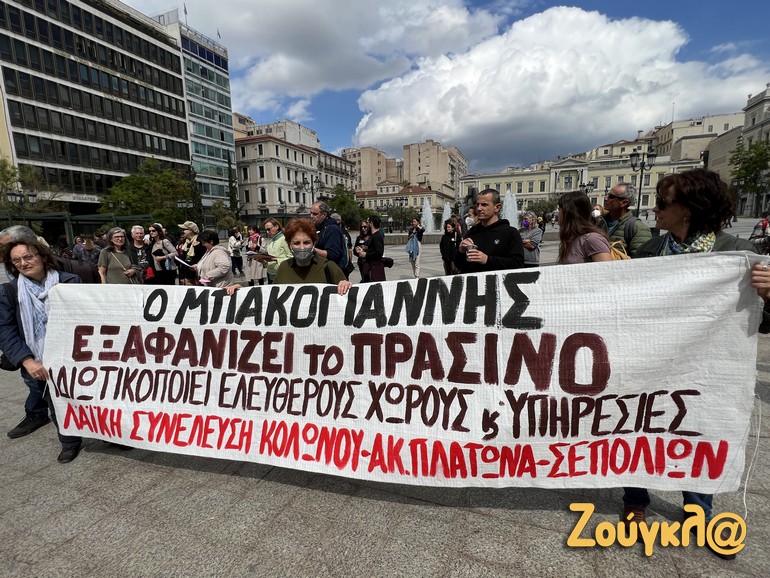 Συγκέντρωση διαμαρτυρίας με περιβαλλοντικό στίγμα πραγματοποίησαν το μεσημέρι της Τετάρτης στην πλατεία Κοτζιά, συλλογικότητες μετά από αίτημα της Λαϊκής Συνέλευσης Κολωνού, Σεπολίων, Ακαδημίας Πλάτωνα και της Πρωτοβουλίας Αγώνα για το Πάρκο της Ακαδημίας Πλάτωνα.