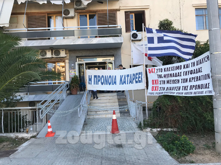 Συγκέντρωση διαμαρτυρίας πραγματοποιούν μέλη της ΠΟΕΔΗΝ σε προνοιακή δομή της Γλυφάδας όπου φιλοξενούνται 52 άτομα με ειδικές ανάγκες και κλείνει με αποτέλεσμα οι φιλοξενούμενοι να μείνουν στον δρόμο.