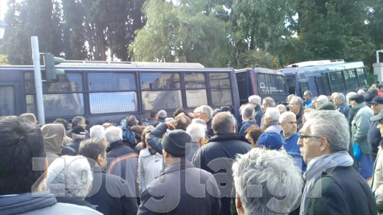 Στην πλατεία Κοτζιά συγκεντρώθηκαν το πρωί της Πέμπτης εκατοντάδες συνταξιούχοι που διαμαρτύρονται για τις περικοπές στις συντάξεις.
