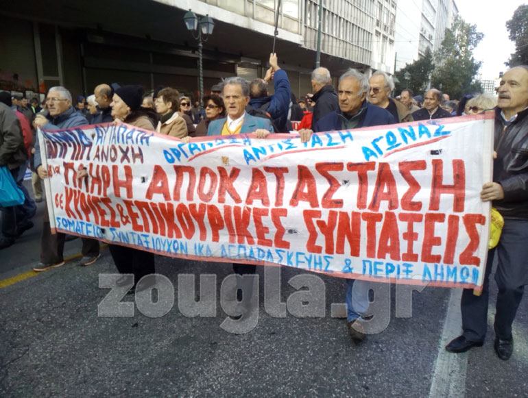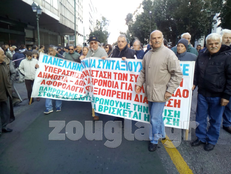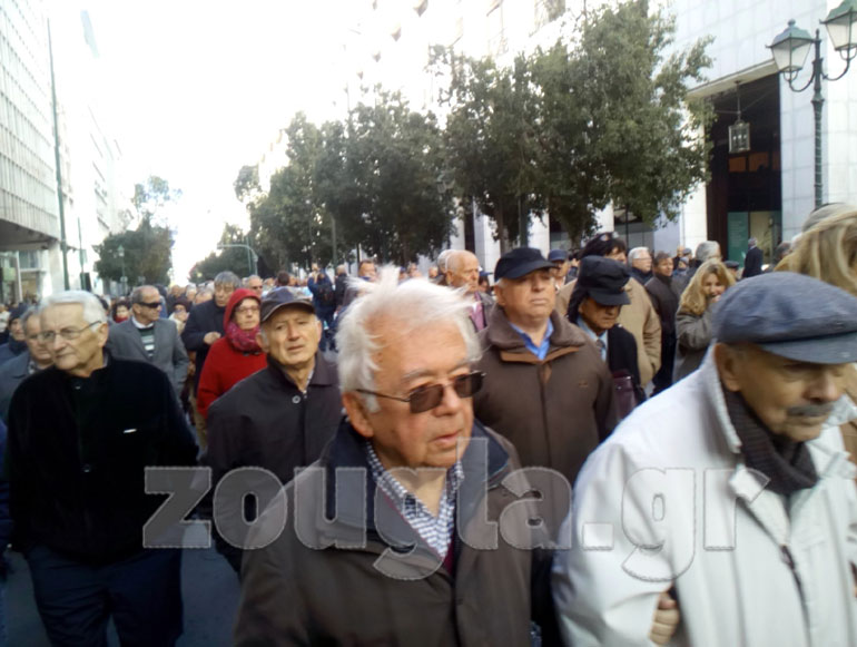 Οι συνταξιούχοι, μέλη των συνεργαζόμενων συνταξιουχικών οργανώσεων (ΙΚΑ-ΕΛΤΑ-ΟΣΕ-ΟΑΕΕ-ΝΑΤ-ΟΤΑ-ΠΟΣΕ) διαμαρτύρονται επίσης για τις επικείμενες αλλαγές στο ασφαλιστικό.