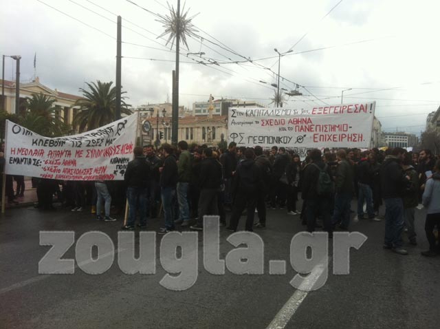 Ξεκίνησε λίγο πριν τις 14.00 η πορεία των φοιτητών που διαμαρτύρονται για την εφαρμογή του σχεδίου «Αθηνά» από το υπουργείο Παιδείας, καθώς πιστεύουν ότι με την εφαρμογή του θα υποστούν υποβάθμιση τα πτυχία τους.