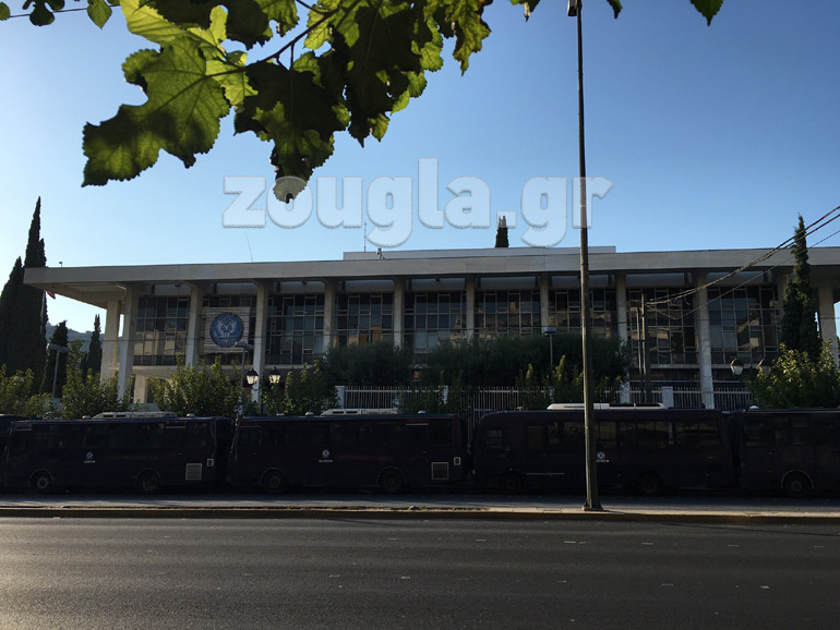 Συγκέντρωση στην αμερικάνικη πρεσβεία πραγματοποιούν το απόγευμα του Σαββάτου μέλη συλλογικοτήτων, με αφορμή τη «διεθνή ημέρα αλληλεγγύης στους κρατουμένους των ΗΠΑ». Η πρεσβεία θυμίζει «φρούριο», καθώς πολλές κλούβες των ΜΑΤ έχουν τοποθετηθεί στη είσοδό της.