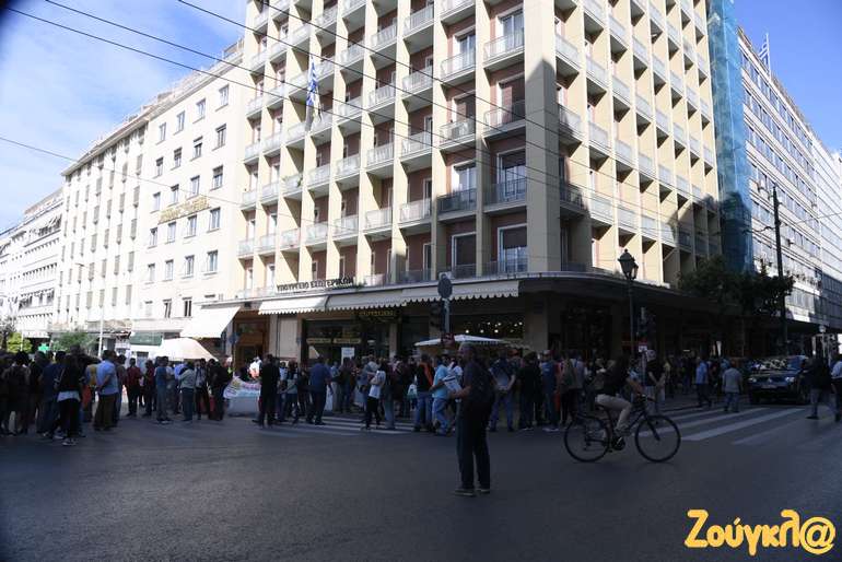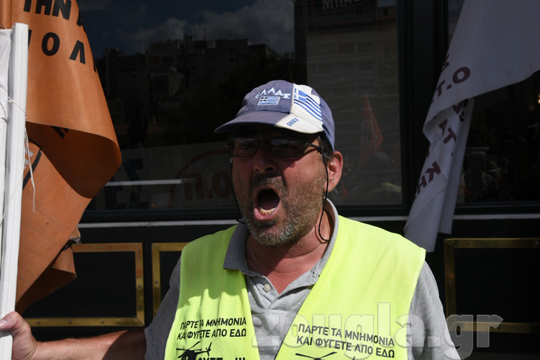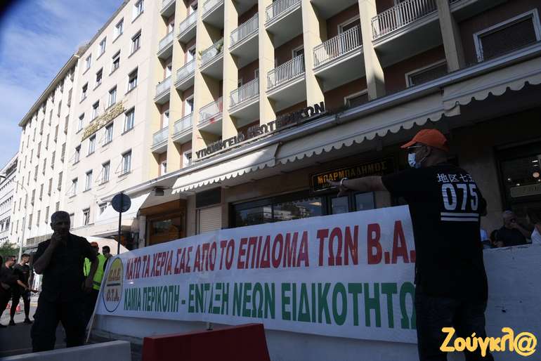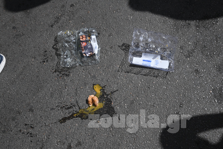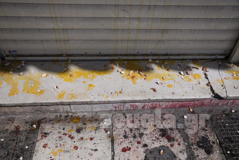 Περί τις 10:00 ορισμένοι διαδηλωτές πέταξαν αυγά, στην είσοδο του υπουργείου.