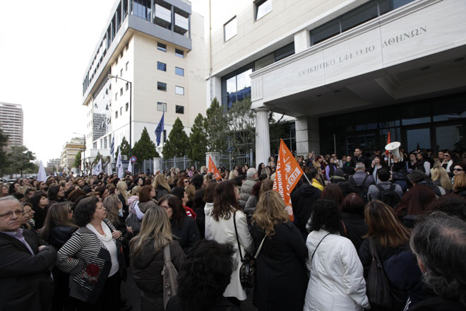 Συγκέντρωση διαμαρτυρίας έξω από το Διοικητικό Εφετείο Αθηνών πραγματοποιούν εργαζόμενοι στους δημοτικούς παιδικούς σταθμούς, με αφορμή τη συζήτηση στο Διοικητικό Εφετείο Αθηνών της προσφυγής για την αύξηση του ωραρίου εργασίας των υπαλλήλων σε αυτούς.