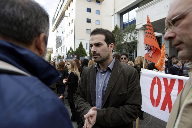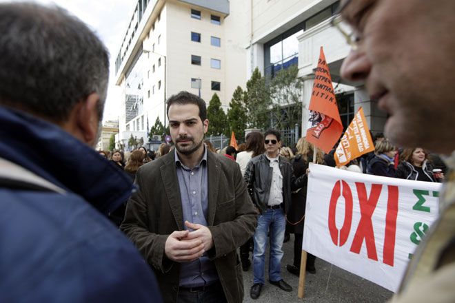 Στη συγκέντρωση παρίσταται και ο υποψήφιος Δήμαρχος Αθηναίων Γαβριήλ Σακελλαρίδης, που στηρίζεται από τον ΣΥΡΙΖΑ.
