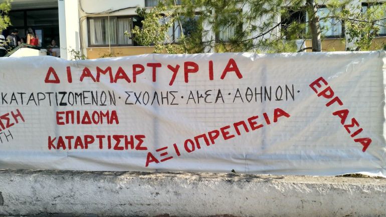 Οι καταρτιζόμενοι της Σχολής ΑμεΑ Αθηνών της Δ.ΥΠ.Α. έδωσαν τη δική τους νότα στο φετινό καλοκαίρι. Με μια ωραία, πολιτισμένη και συνάμα μαχητική διεκδίκηση των νόμιμα κατοχυρωμένων ανθρωπίνων δικαιωμάτων τους. Των δικαιωμάτων τους στην αξιοπρεπή και ασφαλή διαβίωσή τους, την οποία τείνει να τους στερήσει η Δ.ΥΠ.Α., καθώς μένουν ανασφάλιστοι και χωρίς εκπαιδευτικό επίδομα κατά τη διάρκεια των τριών και πλέον μηνών του καλοκαιριού που δεν φοιτούν στη Σχολή. Έτσι, άνθρωποι με πολλαπλές αναπηρίες δεν μπορούν να αρρωστήσουν, καθώς δεν έχουν τη δυνατότητα ιατροφαρμακευτικής περίθαλψης.