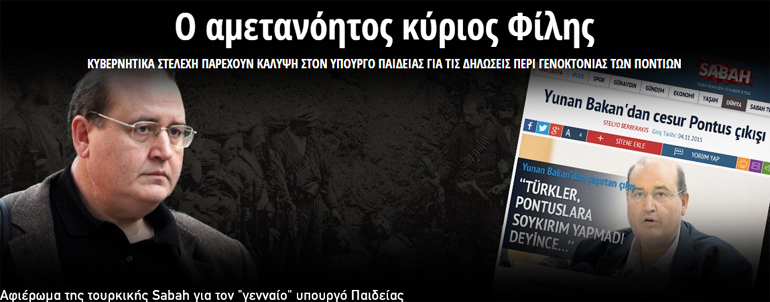 Συγκέντρωση διαμαρτυρίας ενάντια στις πρόσφατες δηλώσεις του υπουργού Παιδείας Νίκου Φίλη για τη Γενοκτονία των Ποντίων πραγματοποιεί στις 4 το μεσημέρι στο Σύνταγμα η Παμποντιακή Ομοσπονδία Ελλάδος.