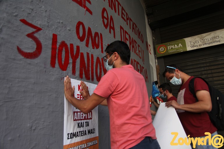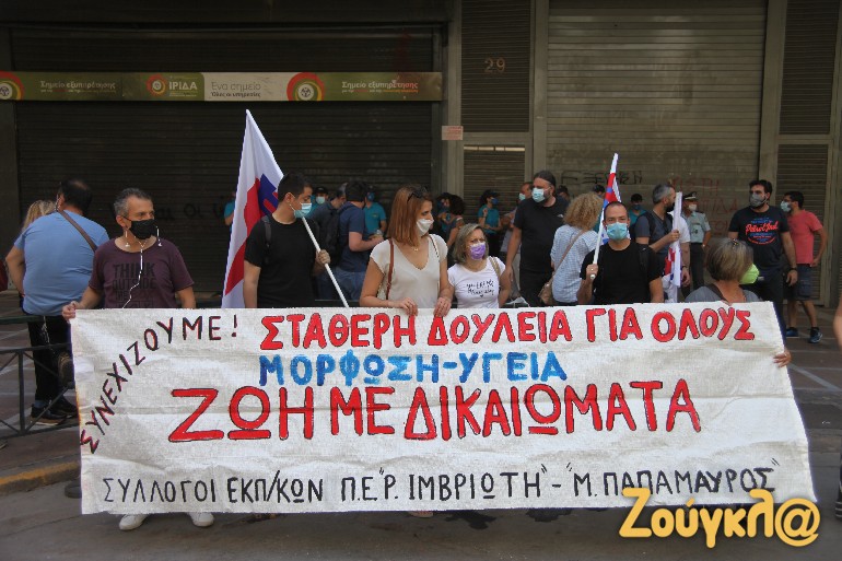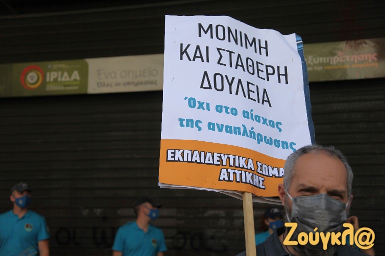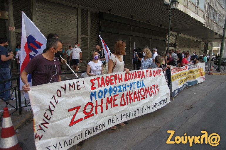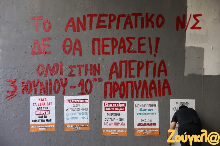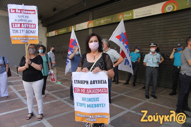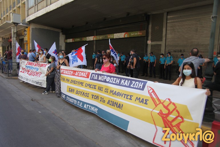 Συγκέντρωση ενάντια στο νομοσχέδιο για τα εργασιακά πραγματοποίησαν σωματεία εκπαιδευτικών έξω από το Υπουργείο Εργασίας.
