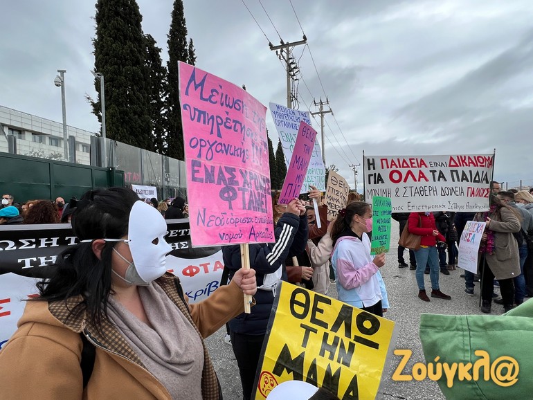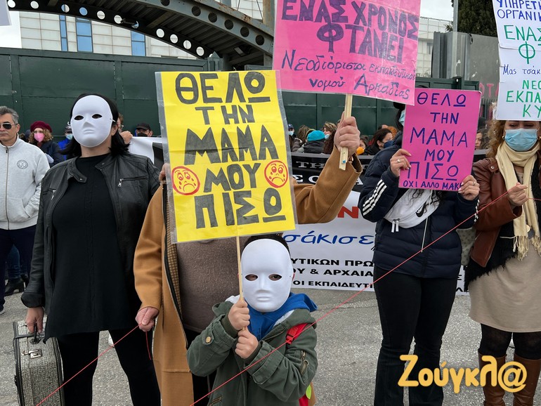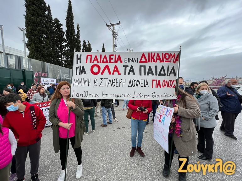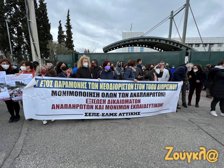 Συγκέντρωση διαμαρτυρίας έξω από το υπουργείο Παιδείας έκαναν εκπαιδευτικοί, οι οποίοι διαμαρτυρήθηκαν για τις συμβάσεις 12.000 νεοδιορισθέντων συναδέλφων τους.