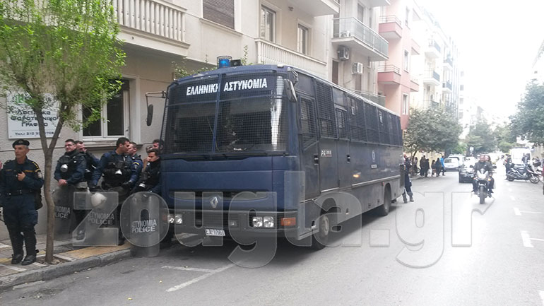 Έξω από συμβολαιογραφείο που βρίσκεται επί της οδού Σκουφά στο Κολωνάκι συγκεντρώθηκαν το μεσημέρι της Τετάρτης πολίτες και μέλη συλλογικοτήτων που αντιδρούν στους πλειστηριασμούς.