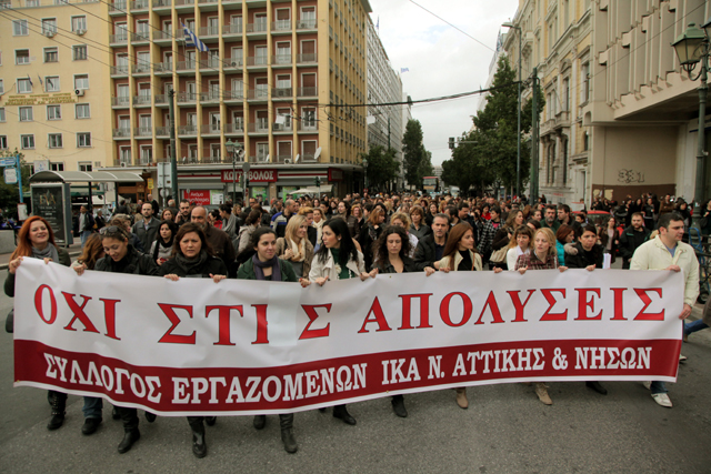 Πορεία διαμαρτυρίας πραγματοποίησαν σήμερα εργαζόμενοι του ΙΚΑ, στο υπουργείο Εργασίας και στα γραφεία του ΠΑΣΟΚ στην οδό Ιπποκράτους...