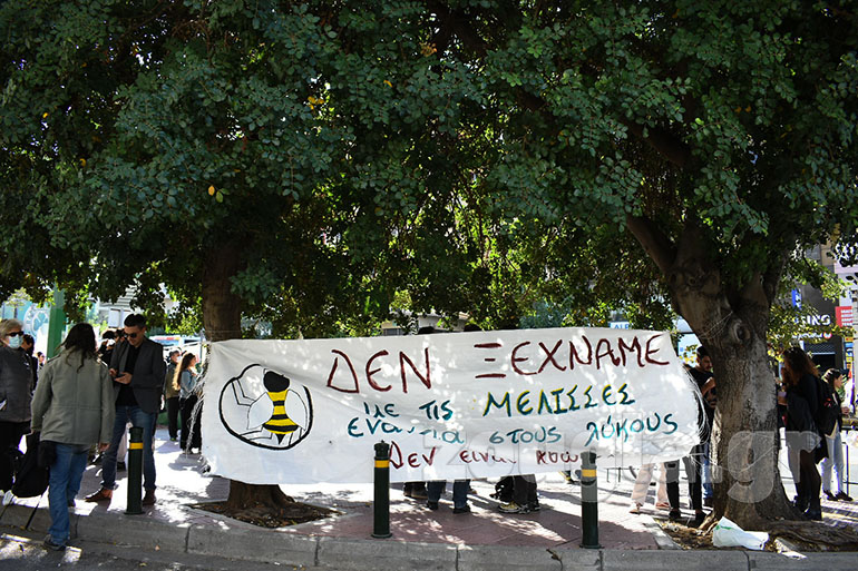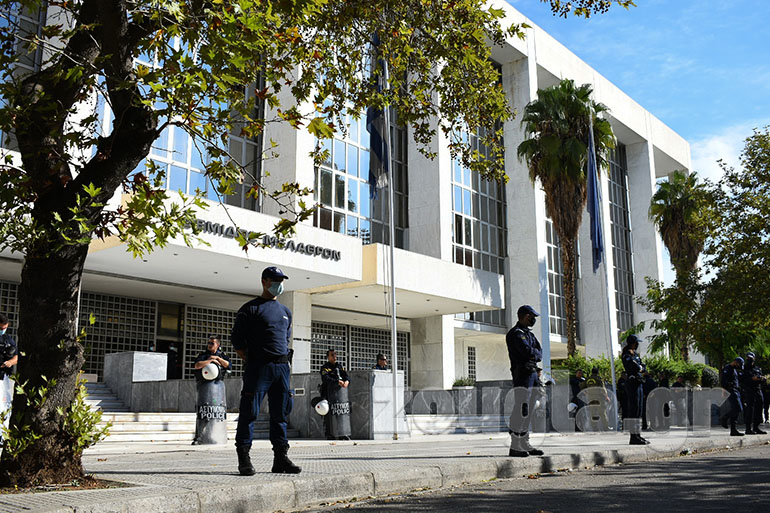 Την ίδια ώρα, έξω από το Εφετείο πραγματοποιείται συγκέντρωση με πανό.