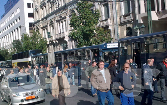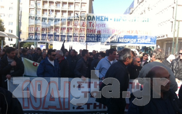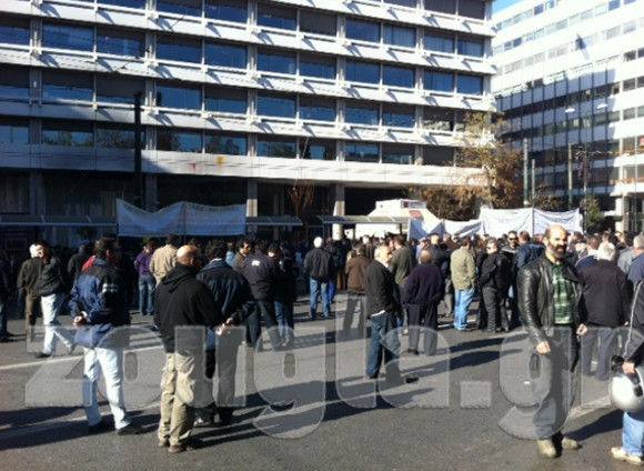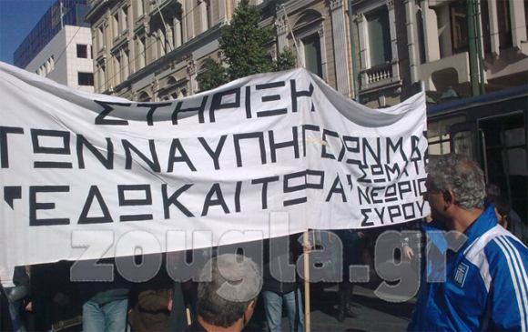 Ολοκληρώθηκε η συγκέντρωση των εργαζομένων στα Ναυπηγεία Σκαραμαγκά, Ελευσίνας και Σύρου στο κέντρο της Αθήνας. Οι εργαζόμενοι συγκεντρώθηκαν στην πλατεία Κλαυθμώνος, στο πλαίσιο της 4ωρης στάσης εργασίας (10:00-14:00), ενώ λίγο μετά τις 11:45 έφτασαν έξω από το Υπουργείο Οικονομικών.
