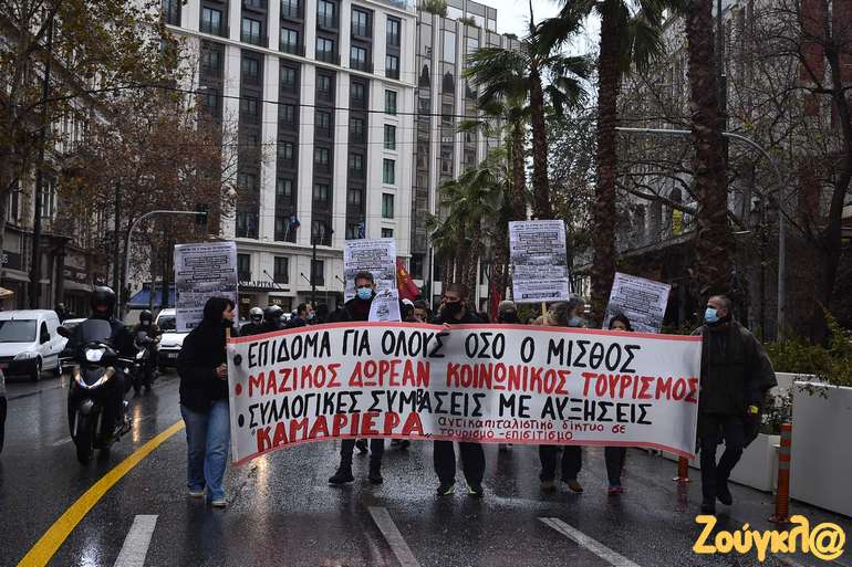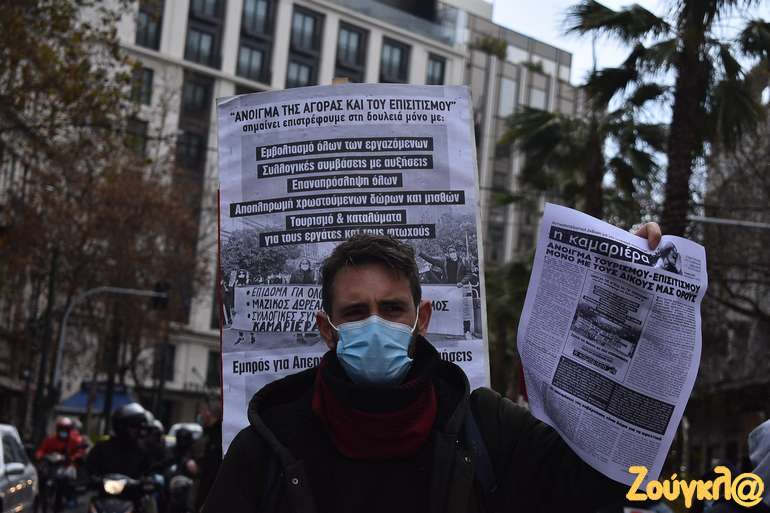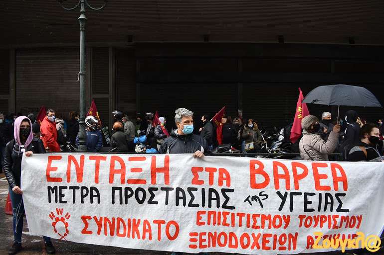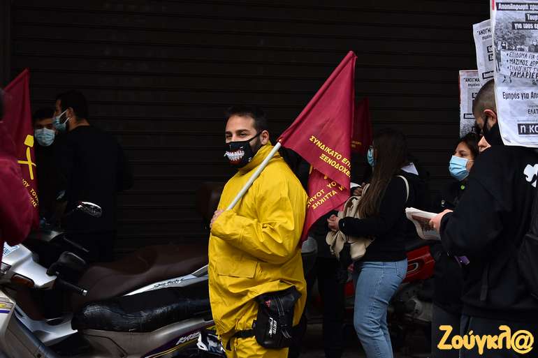 Διανομείς, σερβιτόροι, μάγειρες, μπουφετζήδες, και όλοι εμείς που δουλεύουμε στην μαζική εστίαση, στα καφέ και στα catering, εδώ και ένα χρόνο βιώνουμε τις συνέπειες της εγκληματικής πολιτικής της κυβέρνησης, που διαχειρίζεται τη πανδημία προς όφελος των μεγάλων επιχειρήσεων.